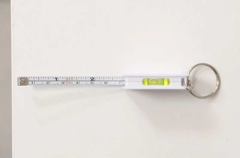 Breloczek do kluczy z miarką o długości 1 m i poziomicą.