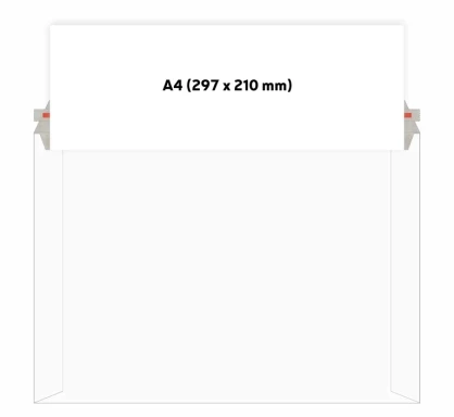 Zamykanie: Odrywany biały pasek z klejem, Rozmiar listu Poczty Polskiej: M